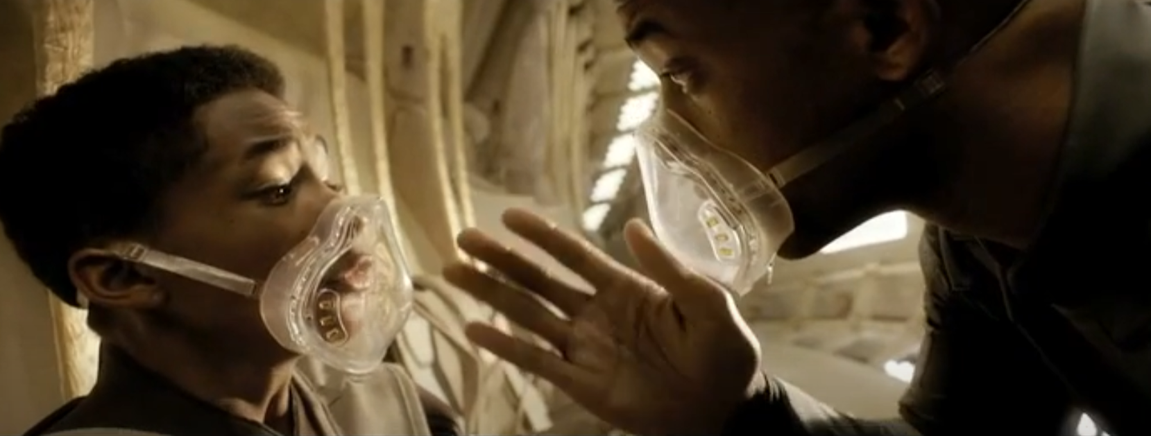 작품상으로는 지구 공기 상 인간이 호흡이 힘든 것으로 표현되고, 인류가 거주하기 힘든 환경이라고 묘사됩니다. 기온폭이 수십도에 달할 정도로 사람이 살기 힘들다는 것을 보여주고 있죠.