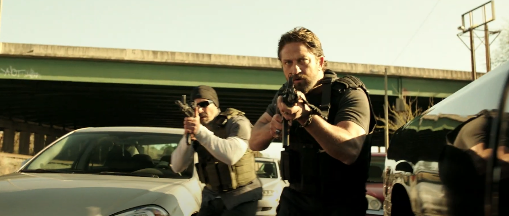 제라드 버틀러 (닉 오브라이언 역을 맡음. 강도단 추적하는 카운티 보안관 특수팀 리더.. 300에서 인기를 끌어 모으고 골든 카메라 어워드 국제배우 상을 2016에 받음)