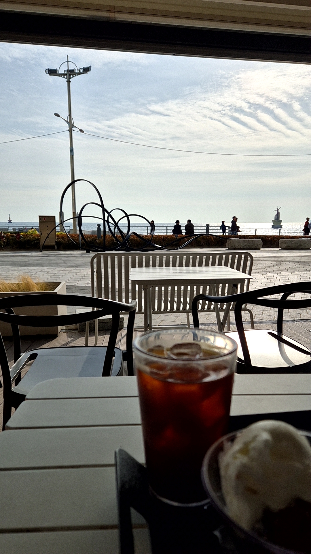 야외 경치 죽이죠? 엘시티 해운대 점인데, 여기 평일날 가면 사람도 없고 야외는 사람들이 잘 없어서 넉넉하게 앉을 수 있습니다.